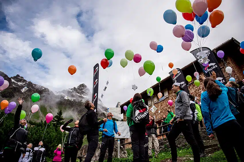 „Vergangenen Freitag feierten wir zwischen wilder Berglandschaft und kleinen Naturwundern unser 20-jähriges Jubiläum. Der skinfitä Philosophie entsprechend stand ein sportliches Miteinander und ein gemeinsames Erlebnis im Vordergrund. Die tiefhängenden Wolken über dem Rätikon Gebirge und Regenschauer trübten unsere Vorfreude auf den bevorstehenden Tag nicht. In aller Frühe machten wir uns auf den Weg in die imposante Bergwelt unserer Heimat. In der Heinrich Hueter Hütte legten wir einen kurzen Zwischenstopp ein, um ein paar Luftballons mit einem überraschungsgutschein steigen zu lassen. Anschließend ging es hinauf auf den 2.517m hohen Saulerkopf. Die atemberaubende Aussicht blieb uns aufgrund dichten Nebels verwehrt. Den Abend ließen wir in der Hütte in Erinnerungen schwelgend und bei kulinarischen Köstlichkeiten ausklingen.“
