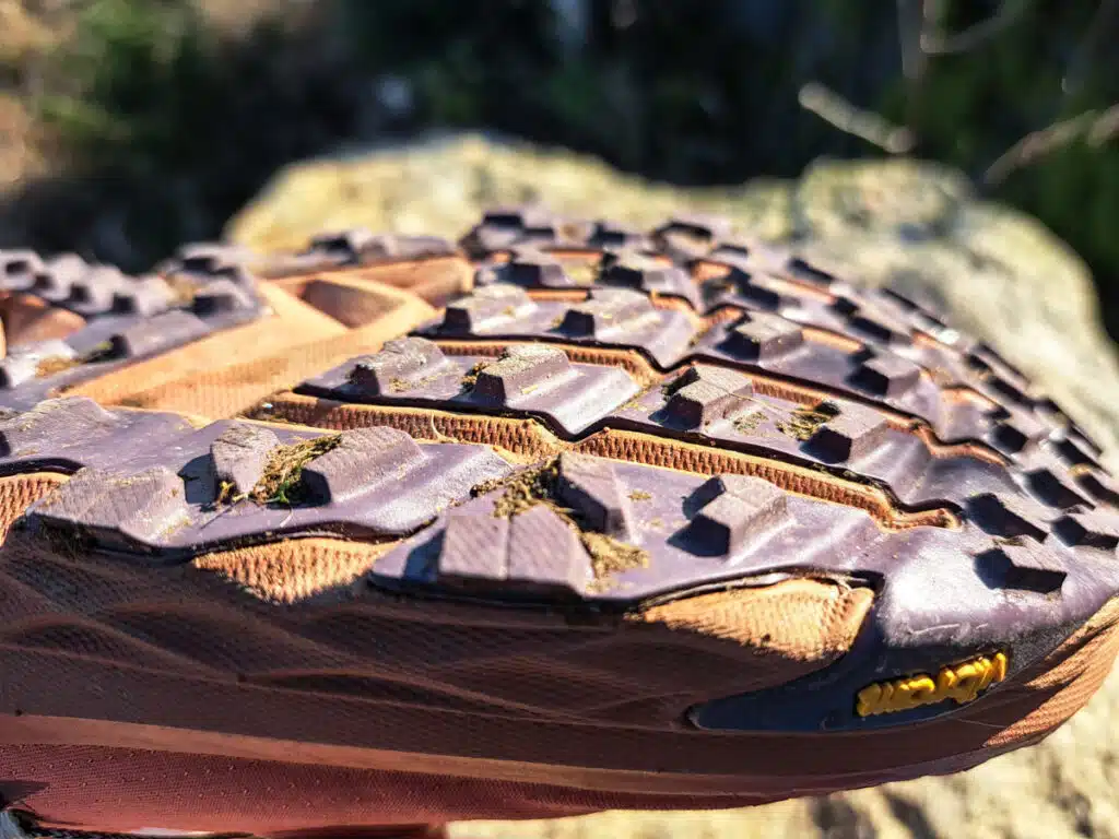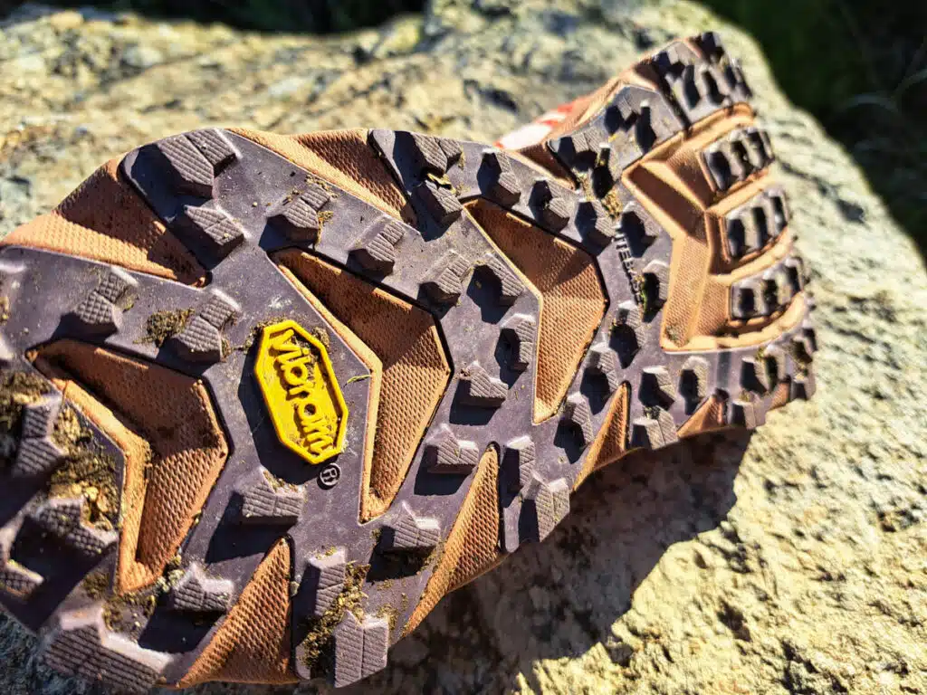 Bei der Sohle wurde auf die bewährte Vibram Litebase Technologie zurückgegriffen. Die Stollen sind gut angeordnet, Steine können nicht hängen bleiben. Sowohl auf einfachen Wurzeltrails als auch im technischen, bergigen Gelände packt die Vibram Sohle ausreichend zu und sorgt für zuverlässigen Grip.