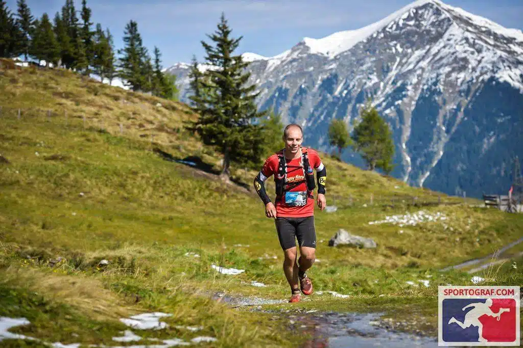 Dementsprechend locker wollte ich es angehen, auch um das Rennen genießen zu können, aber natürlich ist mit dem Startschuss der Wettkampfmodus fix eingespeichert. So ging es zunächst 800hm steil bergauf eine Lifttrasse entlang Richtung Stubnerkogel, immer mit dem Gedanken nicht gleich zu viel Kraft zu verbrauchen – schließlich sollte dieser Anstieg später nochmals zu bewältigen sein. Gemeinsam mit dem Trailrunning-WM-Teilnehmer Michael Geisler fand ich aber einen guten Rhythmus und wir liefen von Beginn an praktisch das gesamte Rennen gemeinsam: bergauf konnte ich voranlaufen und bergab enteilte er mir jedes Mal fast.