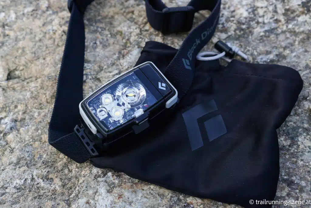Was bei der Black Diamond Distance LT 1100 gleich auffällt, ist das wirklich geringe Gewicht. 108 g inklusive Akku sind wirklich sehr wenig. Das Kopfband ist simpel und schnell eingestellt. Das heißt: Lampe aufsetzen und loslaufen.