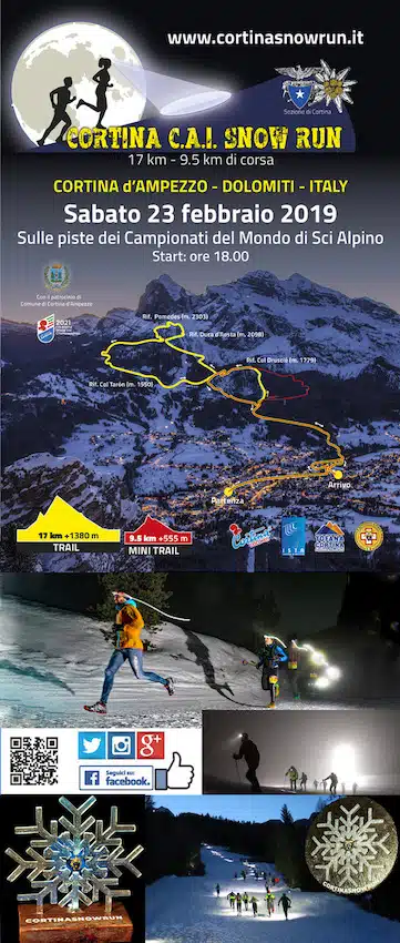 Gut, dass diesen Spaß auch andere erkannt haben und daraus auch gleich einen Event zaubern! Vorteil: keine Pistenbullys! Und dann auch noch Finisher- Party! Allein ist es dann doch manchmal vor allem nach getanem Trail etwas faaad! Und nun kommt das Beste: es gibt auch Events mit mehr Kilometer und an prestigeträchtigen Orten! Wie eben Cortina ´d Ampezzo in ITA. Nicht nur berühmt durch die Olympiade oder die jährlichen Damen Speed Rennen, sondern auch durch James Bond „In tödlicher Mission“! Ja auch der durfte die Tofana rauf – zwar mit dem Lift – runter aber in stilechter Bond- Action und dann hatte er auch noch mehr oder weniger seinen Spaß im Olympischen Eisstadion. Und beide berühmten Locations darf man auch beim Cortina Snow Run „rocken“.