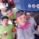 Wir wollten es langsam angehen, damit wir uns nicht verpulvern und auch am letzten Tag noch Reserven haben. Aber kaum viel der Startschuss, sprinteten alle wie die Irren los. Somit landete unser Plan in der Tonne und wir hechelten wie die Irren hinterher. Doofe Gruppendynamik. Es kam wie es kam… Mathias sein erster Einbruch, durch das Laktathusten-Gerenne und zu viel Asphalt. Aber nach Regen folgte Sonnenschein. Nicht nur am Himmel und somit erreichten wir als 6. Mixed-Team überglücklich den ersten Etappenort.