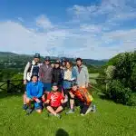 Am dritten Tag geht es mit dem Auto zu unserem Ausgangspunkt. Es erwartet uns ein traumhafter Trail entlang der Höhen des Apennin. Nach rund 200 Höhenmetern sind wir an der höchsten Stelle des heutigen Tages angelangt – soweit das Auge reicht – herrliche Wälder und einzigartige Trails. Wir genießen die Downhills, hinunter nach Bagno di Romagna, wo wir uns am Dorfplatz niederlassen und einen Espresso und eine kühle Erfrischung zu uns nehmen. Dieser kleine Kurort in der Emilia Romagna ist ein beliebter Badeort für die Italiener und bietet mit seiner Therme die optimale möglichkeit zum Regenerieren. Wir nützen das natürlich und verbringen den Nachmittag mit Wellness nach Rämerart.