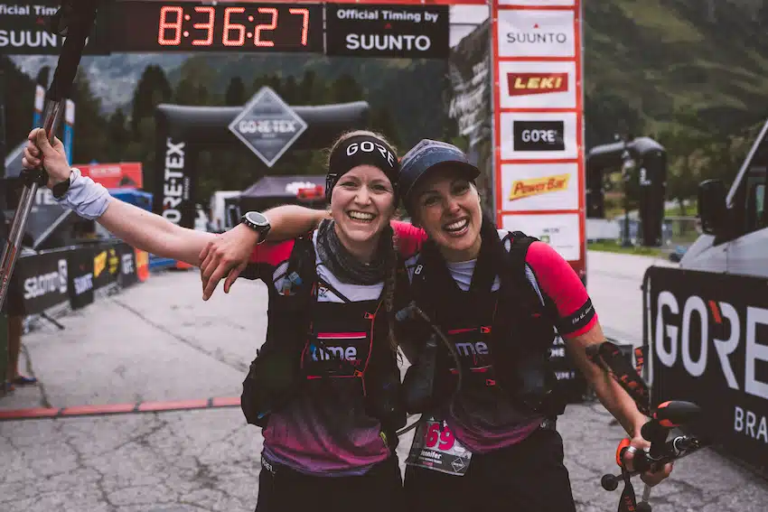 In der Kategorie Frauen feierten die beiden Schwedinnen Lina und Sanna El Kott Hellander (GORE® /Merrel) in 6:19:31,4 Stunden ihren dritten Etappensieg und sind damit auf dem besten Weg, ihren Vorjahrestitel zu verteidigen. 4:21:27 Stunden liegen sie bereits in Front vor Ina Forchhammer/Sarah Doerschlag (Österreich). Aber leicht war es diesmal nicht, wie beide unisono erklärten: „Im Mittelteil lief es überhaupt nicht, wir haben uns schwergetan.“ Sichtbares Zeichen im Zielbereich: Zum ersten Mal waren auch die beiden erst 24 Jahre alten Skandinavierinnen aus Mittel-Schweden sichtlich erschöpft. Mit ihrer Zeit setzten sie allerdings ein echtes Ausrufezeichen. Die 6:19:31,4 Stunden bedeuteten die siebtbeste Zeit insgesamt. Mit 1:55 Stunden Rückstand erreichten Forchthammer/Doerschlag als Zweite das Ziel, Jennifer Eisenhuber/Veronika Hamminger (ebenfalls Österreich) lagen 2:16:41 Stunden zurück.