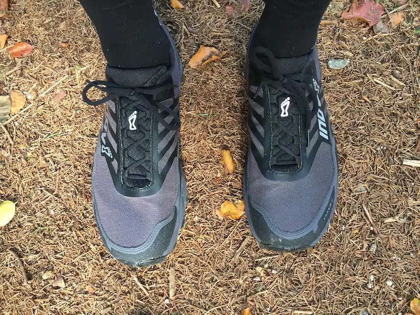 inov-8 verarbeitet simple Schuhbänder. Eine Schnürsenkelbox/tasche sucht man vergeblich, aber immerhin halten die Bänder zuverlässig auch ohne Doppelknoten.