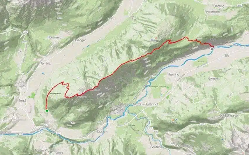 Unsere Route führt uns von Karrösten über den Tschirgant bis nach Silz zum Crazy Eddy.