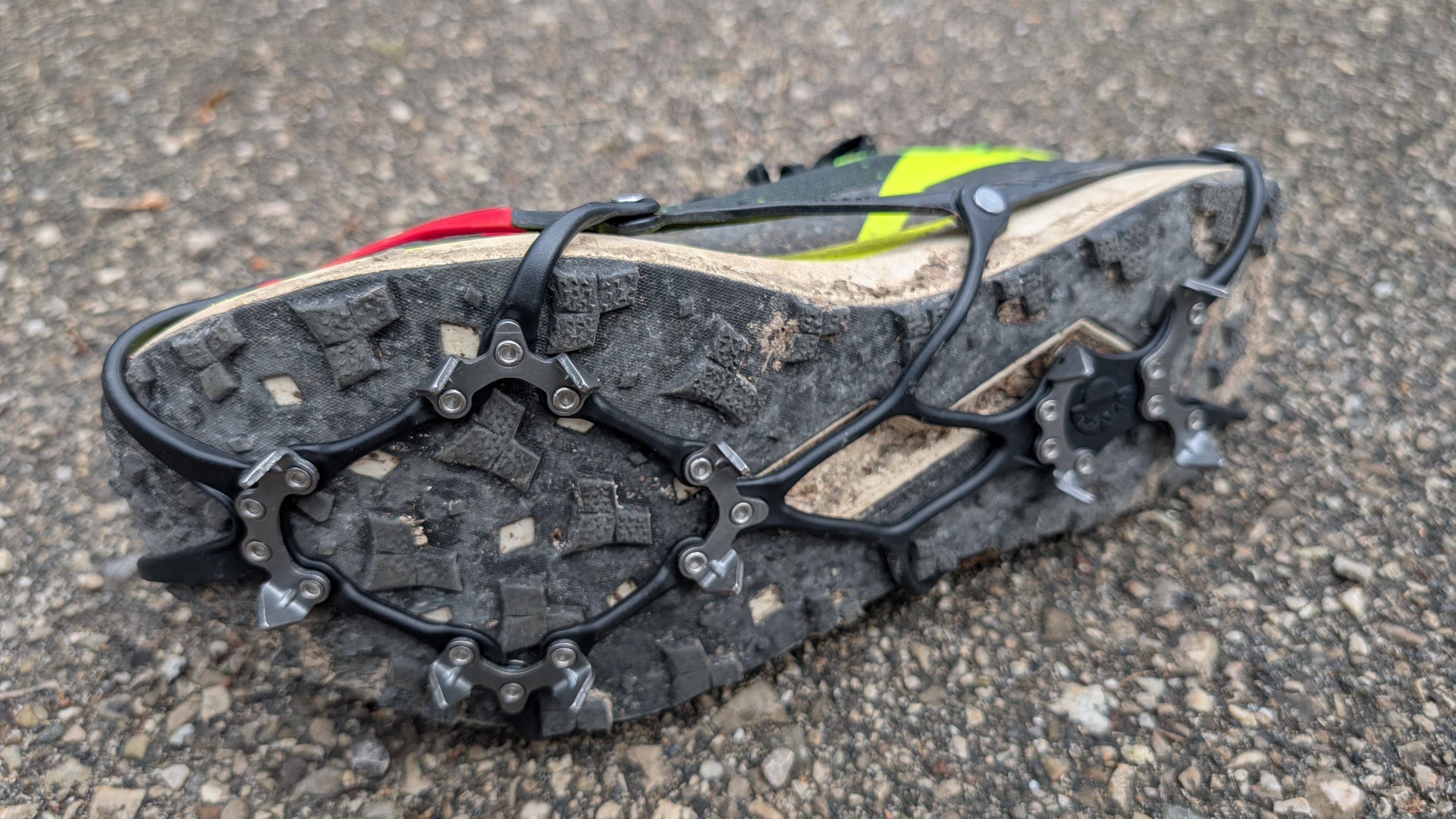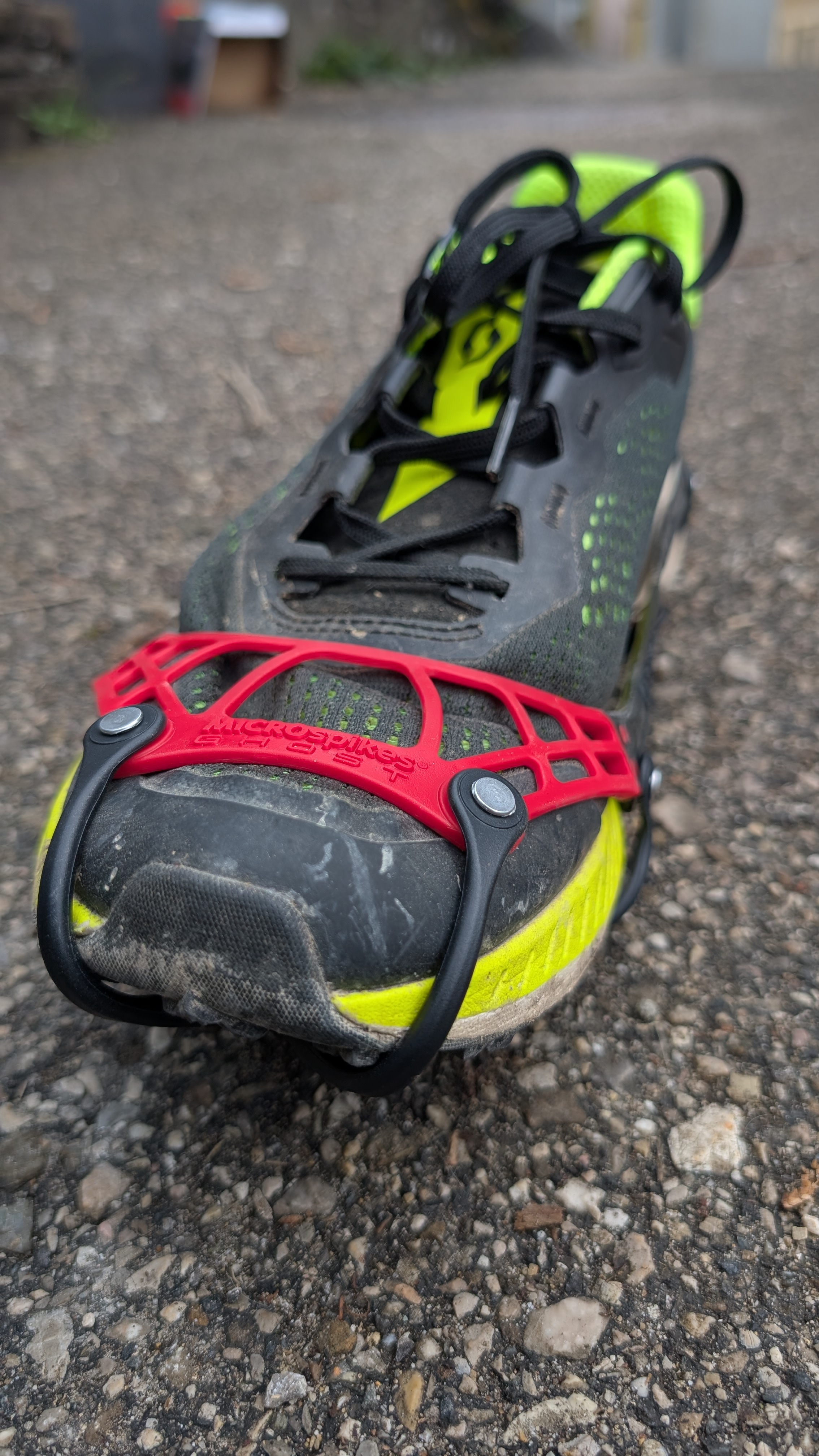 Außerdem: kein lästiges Kettenscheppern mehr, keine anfrierenden kalten Finger an kalten Kettengliedern. Die Spikes lassen sich tadellos anziehen und halten perfekt am Schuh.