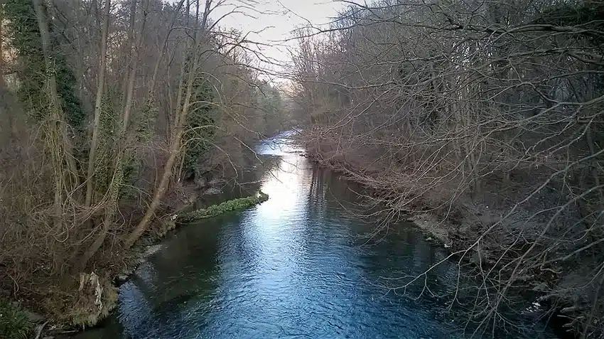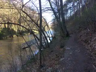 Gut eingelaufen geht es jetzt ein klein wenig bergab worauf aber der erste wirklich lange und steile Anstieg folgt hinauf auf den Vorderkogel. Durch den Wald schlängelt sich ein Singletrail hinauf. Alle keuchen und schnaufen und es ist schon ziemlich warm unter den Schatten spendenden Fichten. Das Teilnehmerfeld hat sich schon längst deutlich auseinander gezogen sodass man nicht mehr so viele LäuferInnen sieht. Ich laufe gemeinsam mit einer Kollegin, wir tauschen uns ein wenig aus. Schon haben wir uns verplaudert und das rotweiße Markierungsband scheinbar übersehen. Bodenmarkierungen wurden von den Bundesforsten rigoros verboten, und es durften auch kaum Schilder aufgestellt werden. Deshalb heißt es ganz bewusst aufzupassen auf die Bänder, die an sich ausreichend und top die gesamte Strecke markieren. Zum Glück erkennen wir unseren Irrtum rasch und müssen nicht weit zurücklaufen um wieder auf die richtige Strecke zu kommen. Von hier weg läuft es bergab, bis ins Tal, der Boden übersät mit duftendem Bärlauch. Ganz unten direkt an der Schwechat folgt die nächste Labstelle, gut bestückt mit Brot, Obst, Iso und Wasser. Weiter geht es dem Fluss entlang im Helenental, eine wunderschöne sehr schnelle Passage der Strecke. Der nächste Abschnitt jedoch verlangt uns wieder alles ab. Denn nach ca. 14 KM beginnt der längste Anstieg. Auf knapp 4 Kilometern sind 550 Höhenmeter zu bewältigen. In der Mittagshitze und teilweise baumlosem steilen Gelände wird es besonders heiß. Stetigen Schrittes geht es bergauf. Den höchsten Punkt erreicht man nach 18 Kilometern auf 834 m SeeHöhe, das Eiserne Tor auf dem Hohen Lindkogel.