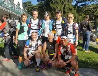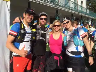 Die letzten beiden Kilometer vor dem Ziel laufe ich erneut auf eine starke Teamkollegin auf, Susanne Schrack, und wundere mich sehr. Denn unter normalen Umständen würde sie mir auf so einem Trail gut eine Stunde abnehmen. Sie bekommt aber kaum Luft aufgrund der Pollenallergie und die Hitze setzt ihr stark zu. Ich frage besorgt nach ob ich sie bis ins Ziel begleiten soll. Sie winkt jedoch ab und meint, – Lauf weitera – . Selbst ziemlich am Ende meiner Kräfte, jedoch immens vor Freude strahlend, laufe ich unter dem Zielbogen durch, um sofort nach der Ziellinie erschöpft umzufallen und auf allen Vieren den nähersten Schattenplatz zu suchen. Was war das für eine Hitzeschlacht! Liebevoll versammeln sich sofort einige Läuferinnen um mich, unter Ihnen wieder Martina Trimmel, die mit Abstand die Damentageswertung anführt. Sie bringen mir Wasser und Iso. Jedoch anstatt zu trinken schütte ich mir alles erstmals über den Kopf. Es dauert aber nicht lange und ich springe wieder auf, will sofort erfahren wie es jedem einzelnen ergangen ist auf diesem wunderschönen, schnellen aber durchaus anspruchsvollem Trail. Da sind sich alle einig, die gesamten 32,8 Kilometer sind beinahe perfekt.