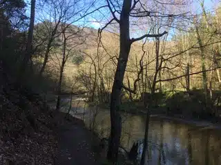 Die Anstiege sind geschafft, jetzt wird es für die richtig schnellen Athleten wirklich flott. Teilweise auf Forststraßen, aber auch einigen schönen Waldwegen voller Blätter geht es den gesamten Südhang hinunter. Ich laufe auf einen Läufer auf der über Oberschenkelkrämpfe klagt und reiche ihm sofort meine Magnesiumsticks in der Hoffnung sie würden ihm helfen.