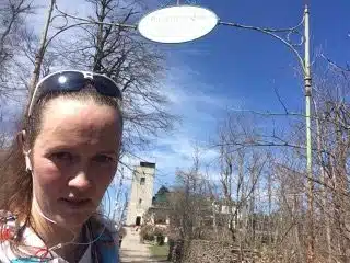 Am Eventtag selbst strahlen alle Teilnehmer mit der Sonne um die Wette, 22 Grad, es verspricht ein märchenhafter fast schon frühsommerlicher Tag zu werden, auch wenn es in der Früh noch ein wenig kühler zu sein scheint. Am VeranstaltungsGelände angekommen, treffe ich so viele Freunde wie sonst nie bei einem Laufevent. Alle sind sie da, und wer nicht schon längst angemeldet war, der nennt noch nach vor Ort. Das Anninger TrailRunning Team, die TrailläuferInnen der LC Wienerwaldschnecken, als auch einige SportlerInnen des Team Vegan.at, VIE RUN, Run together, Freunde des Laufsports, Athletenschmiede Walpersbach aber vor allem ganz viele LäuferInnen der Community Trailrunning Vienna und Umgebung. Stimmung ist phantastisch, wie ein großes Familientreffen, jeder kennt jeden. Es wird viel geplaudert, unzählige Fotos geknipst und beinahe das Briefing, 10 Minuten vor dem Start versäumt. Also versammeln sich alle LäuferInnen rund um den schönen Pavillon im Kurpark und lauschen andächtig Gregor Goldmanns Streckenbeschreibung. Im Startbereich sehe ich gerade noch Martina Trimmel, die groß gewachsene, super schnelle Athletin, die ich schon voriges Jahr beim Ötscher kennenlernen durfte, und wir wechseln noch einige Worte miteinander.