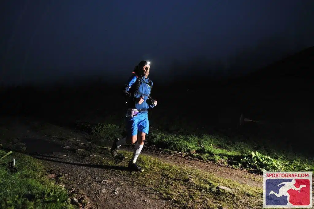 Verletzungsfrei und gesund durch die Vorbereitungszeit gelangt mache ich mich am 3.6. um 22 Uhr gemeinsam mit Papa auf den Weg nach Maria Alm. Vor dem Hotel Niederreiter geparkt geht es erst mal auf zum Race-Briefing. Dadurch ich mich die ganze Woche sehr gut auf die Strecke und auch auf das Wetter vorbereitet hatte häre ich eigentlich nichts Neues mehr. Aber egal, es gehört natürlich dazu und die anderen Teilnehmer mit all ihren unterschiedlichen Outfits zu sehen ist ja auch irgendwie lässig. So genieße ich noch meinen letzten Kaffee bevor ich mich um etwa 23:30 als erster zur Rucksackkontrolle begebe. Stichprobenartig werden Reservebatterien und Regenjacke kontrolliert und dann setze ich mich auf das Siegertreppchen, das auf der nassen Bühne steht, um meinen Rucksack wieder ordentlich zu packen. Noch schnell das Iphone am 6000er Akkupack angeschlossen und alles in der wasserdichten Tasche verstaut. Dann starte ich noch 20 Minuten vor Start das Runtastic-Livetracking für die sich sorgende Familie und interessierte Freunde und Kollegen. Papa macht noch ein paar Fotos, wünscht mir alles Gute und das ich aufpassen soll und schon geht es für mich um Punkt Mitternacht mit „Highwß to Hell“ in die Nacht – warum auch immer in der ersten Startreihe. Hat sich halt so ergeben, wurscht. Gleich mal meine Hochkönigman-Plßlist gestartet versuche ich mein eigenes Tempo zu finden und meine Herzfrequzenz zu stabilisieren was mir sofort perfekt gelingt. So geht es den ersten Teil der Strecke bis zum Massingsattel im Laufschritt dahin. Mein Körpergefühl ist hervorragend. Vom Massingsattel geht es bald ziemlich steil bergab. In der Kolonne rutschen wir mehr oder weniger im Gatsch und Sumpf über Wurzelwerk und Steine bergab. Und schon ist’s passiert und wir verlaufen uns um ein paar hundert Meter bis wir wadentief im Sumpf und Kuhdreck stehen. Sinnlos.