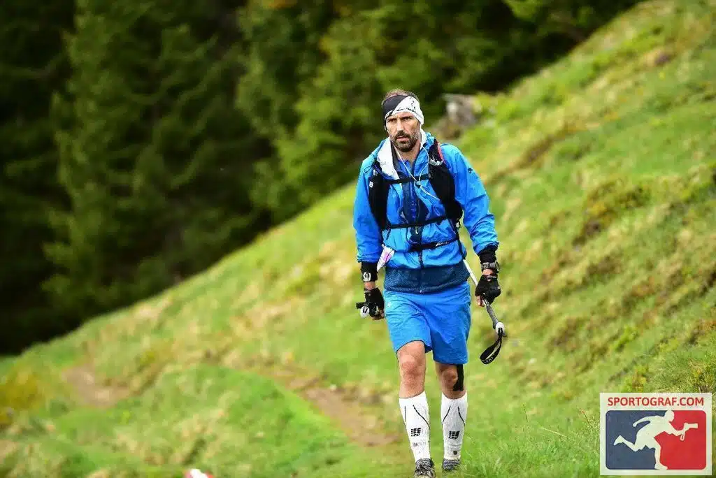 Auch die ersten Teilnehmer des Marathontrails kommen vorbei. Unter anderem mein Spezl mit dem ich den Marathon-Trail letztes Jahr gelaufen bin. So, kurz vor 11Uhr mach ich mich auf in Richtung Klingspitz. Es wird heiß, richtig dampfig. Ekelhaft dampfig sogar. Der Himmel ist tiefblau, die Sonne brennt ins Genick und auf das Haupt. Ein Griff zur Soft-Flask. Scheiße, ich habe in Dienten zwar die Labe in vollen Zügen genossen aber vergessen die Flaschen aufzufüllen. Ich bin so ein Volltrottel!! Vom letzten Jahr weiß ich daß kurze Zeit später ein Brunntrog steht. Dort gibta – s zwar kein Elektrolytgetränk aber immerhin Trinkwasser. So gesehen hält sich der Schaden halbwegs in Grenzen. Es geht über Wiesen hinauf, vorbei an der Lettenalm, langsam in Richtung Klingspitz. Die Herzfrequenz bleibt zwar stets konstant zwischen 110 und 120 aber den Beinen geht langsam die Kraft aus. Immer wieder bleibe ich mal kurz stehen um zu verschnaufen. Eigentlich geht es mir gar nicht schlecht. Ich frag mich aber trotzdem wie ich ausschaue oder wirke da mich jeder vorbeilaufende Teilnehmer fragt ob ich Hilfe benötige. Brauche ich Gott sei Dank nicht aber ich bin schon wirklich anständig müde. Ich könnte auf die Sekunde einschlafen. Klingspitz – 67km, knapp über 13 Stunden. Geh leck, wie weit ist das Statzerhaus bitte weg. Kann ich mich gar nicht mehr erinnern. Naja, hilft eh nichts. Ich muss da rüber. Jetzt umdrehen wär ja auch irgendwie bläd. Ab jetzt wird es aber richtig mühsam. Stufen oder Geländekanten runter und mit dem linken Knie abfedern geht gar nicht mehr. Das rechte Bein muss zu 100% übernehmen. Teilnehmer des Marathon-Trails wandern bei mir vorbei die optisch zur Nordic Walking Flachland-Einsteiger-Fraktion gehären. Das gibt meiner Trailrunner-Ehre und meinem Stolz einen ordentlichen Hieb. Mah, jetzt zwickt auch noch die Lendenwirbelbandscheibe. Gehe bzw. laufe ich echt schon so verdreht dass ich die Wirbelsäule spüre oder ist einfach die Rumpfmuskulatur am Ende? Bergauf über die Schneefelder gehta – s dann wieder halbwegs. Um 14h38 erreiche ich nach 72km das Statzerhaus. Oben angekommen beginnt es auch noch zu regnen, aber das ist mir mittlerweile auch schon egal. Kurze Frage vom netten, jungen Arzt ob ich irgendwelche Beschwerden hätte. Ich zitiere meinen nächtlichen Gedanken: „natürlich nicht, bin jo a Maschin'“ und muss lachen. Er nicht.