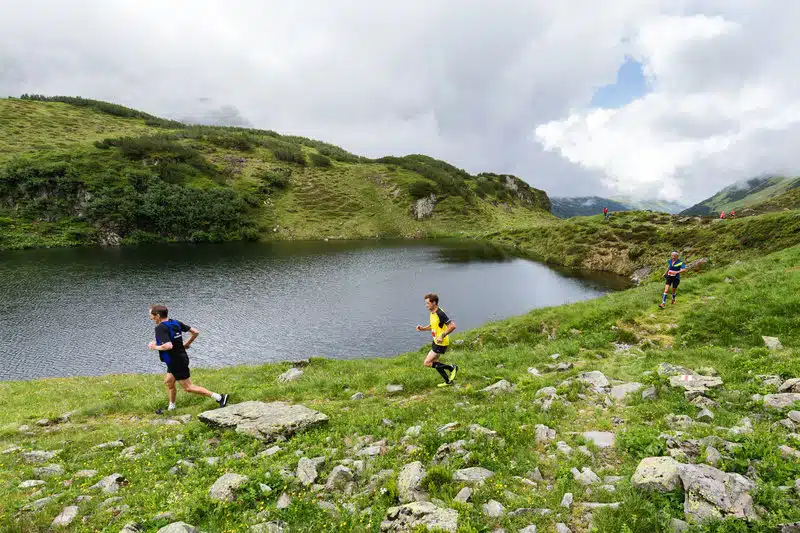Auf der andern Seite des – Langen Seesa – , wieder freundliche Gesichter der St. Antoner Bergrettung und eine gut bestückte Labestation. Salzkartoffel, Früchte und verschiedenste getränke ermutigen den Läufer in Richtung Konstanzer Hütte und St. Anton weiter zu laufen.