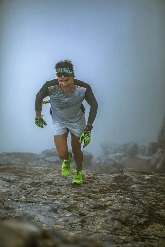 Der Athlet darf sich über die Rekordzeit freuen und seine Leistung „by fair means“ – also ganz ohne fremde Hilfe – bezeichnen. Namberger ist morgens bei Nebel und kühlen Temperaturen gestartet. Der Ausdauer-Profi war mit der neuen DYNAFIT DNA Race-Kollektion für kommenden Sommer minimal aber zweckmäßig für die alpine Tour ausgestattet. Sein Equipment führte Namberger in den Taschen der Hose, die speziell für Trailrunning Wettkämpfe konzipiert wurde, mit.