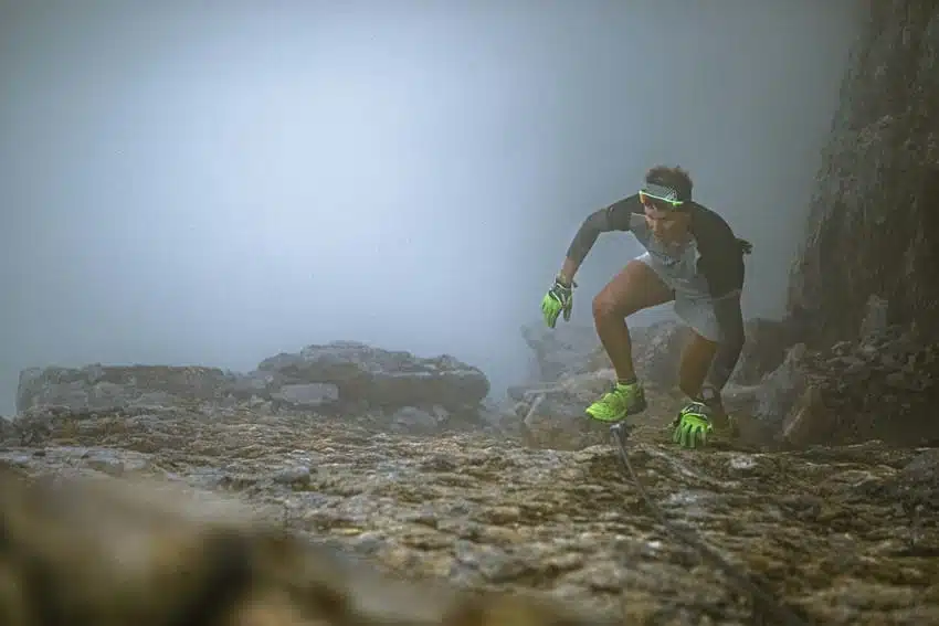 Der Athlet darf sich über die Rekordzeit freuen und seine Leistung „by fair means“ – also ganz ohne fremde Hilfe – bezeichnen. Namberger ist morgens bei Nebel und kühlen Temperaturen gestartet. Der Ausdauer-Profi war mit der neuen DYNAFIT DNA Race-Kollektion für kommenden Sommer minimal aber zweckmäßig für die alpine Tour ausgestattet. Sein Equipment führte Namberger in den Taschen der Hose, die speziell für Trailrunning Wettkämpfe konzipiert wurde, mit.