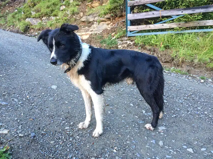 Gut gestärkt und voll motiviert ging es auf lässigen Waldsteigen Richtung Larcheralm und von dort auf einem herrlichen Downhill Richtung Wenns. Ein paar hundert Meter nach der Alm bemerkte ich, dass ich einen Wegbegleiter hatte: Der Border Collie vom Hüttenwirt verfolgte mich ganz unauffällig. Als ich ihn bemerkte, lieferten wir uns ein Rennen.