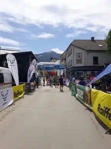 Im Zentrum von Gröbming wurden wir nicht nach links in das Ziel (das man schon fast hätte sehen können), sondern nach rechts nochmals hinauf auf die Kulmleitn geschickt. Nach einem tiefen Luftholen machte ich mich Zähne zusammenbeißend auf zur Besteigung des für mich in dem Moment höchsten Berges. In Wahrheit waren es in etwa 80 Höhenmeter, die es aber in sich hatten, wenn man sich vor fünf Minuten schon im Ziel gesehen hat.
