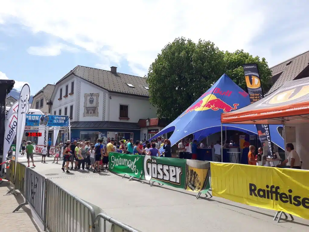 Nachdem ich den Laufrucksack mit den vorgeschriebenen Utensilien gepackt, die Startnummer und den Chip montiert hatte, ging es auch schon los in Richtung Startbereich (immer mit dem Gedanken, hoffentlich alles dabei zu haben), der sich am Hauptplatz von Gröbming befand.
