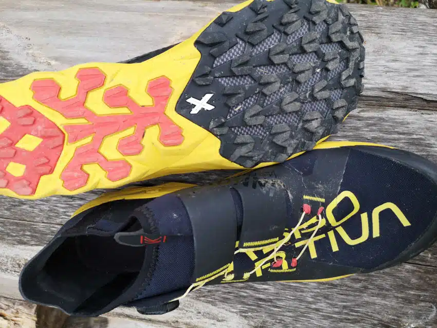 Die FriXion-White Sohle bietet ein gutes Profil, das am Fels zuverlässig hält. Wenn es wirklich rutschig ist, ist bergab etwas Vorsicht geboten. Der Schuh soll aber vor allem bergauf extrem gut sein und genau das ist er.