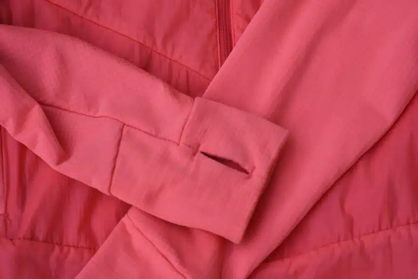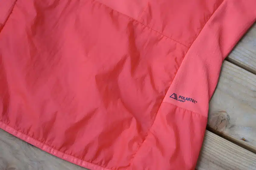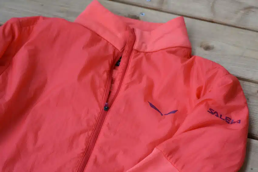 Der Kragen ist relativ hoch, das ist angenehm, wenn ein kalter Wind bläst. Der Frontbereich ist gut isoliert, ärmel- und Schulterbereich sind mit Stretch-Material ausgestattet und machen jede Bewegung am Trail mit.