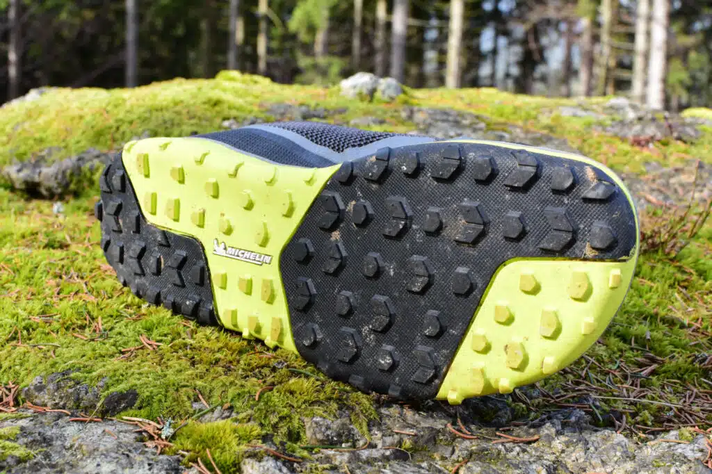 Die Sohle ist eine Michelin Fiberlite mit relativ kleinen Stollen. Für tiefen Schlamm ist der Schuh also nicht geeignet, auf Fels und leichten Trails hält die Sohle aber bombenfest.