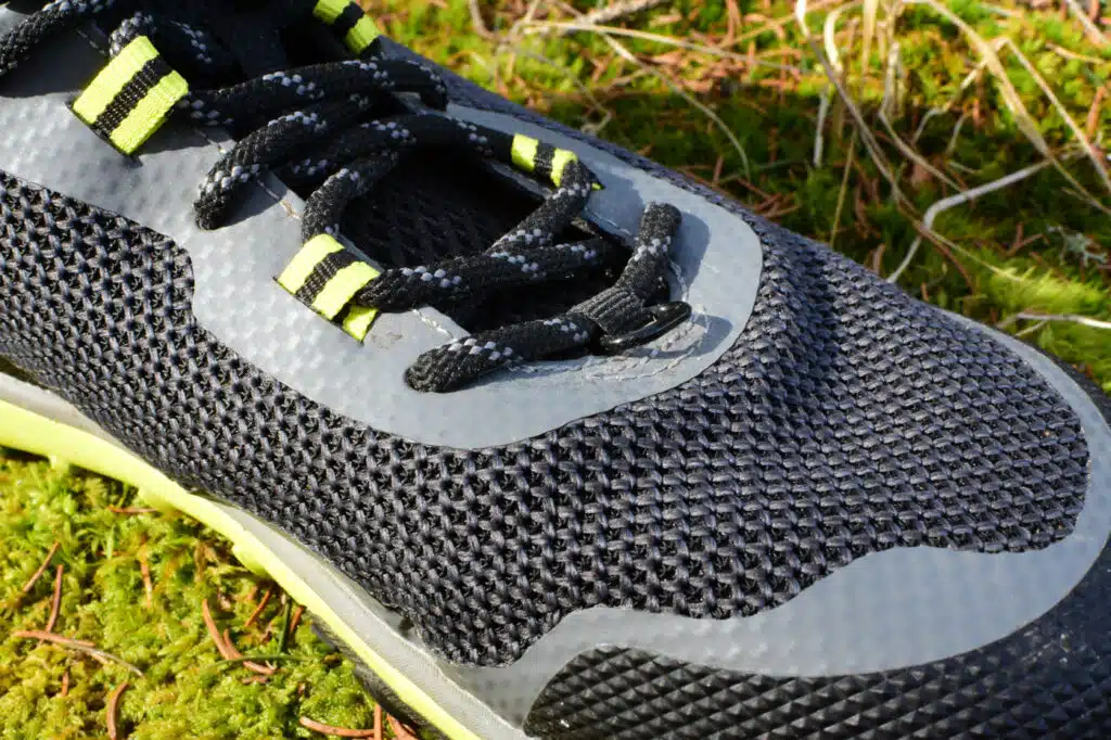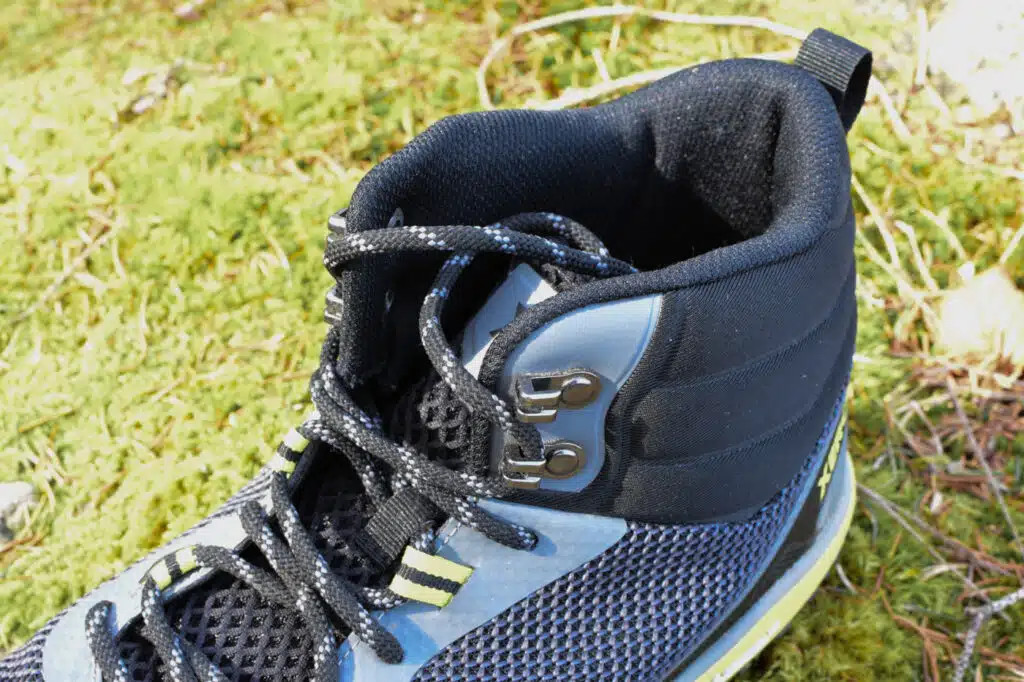 Damit der Fuß, im Speziellen die Zehen, Raum haben, um sich auszubreiten, ist der Vorfußbereich großzügig breit geschnitten. Dank der Schnürung vom Vorfußbereich bis über den Knöchel lässt sich der Schuh sehr gut an den Fuß anpassen, man genießt einen sicheren Halt, ohne zu verrutschen.