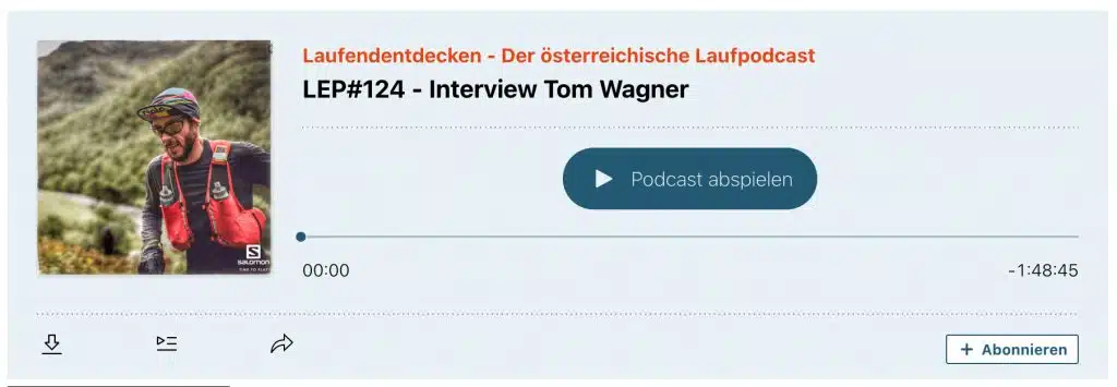 Tom Wagner ist Gast in der aktuellen Episode. Er ist einer der besten Ultraläufer Österreichs und spricht unter anderem über den (legendären!) PTL im Rahmen des UTMB. Er war heuer außerdem beim Großglockner Ultratrail mit dabei, ist Vater geworden -> da hat sich viel geändert … hat bei Rennen wie dem Chiemgauer 100 immer wieder bewiesen, dass mit ihm ganz vorne zu rechnen ist.