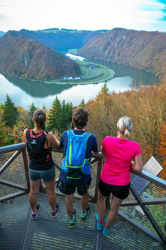 Der Donausteig – ein Abenteuerreich und Kraftplatz für Genuss, Geist und alle Sinne. So manche Stelle am Donausteig ist ein echter Kraftplatz. Nehme man nur die Aussichtsplattform, die den Blick über die atemberaubende Doppelkurve der Donau freigibt – ein Postkartenmotiv das um die Welt geht. Doch kein Bild kann jemals das Erlebnis vermitteln, wenn man tatsächlich auf der Aussichtsplattform steht und diese spektakuläre Naturgewalt in seiner vollen Schönheit erblickt. Ebenso beeindruckend sind die wildromantischen Schluchten und Täler, die ein tiefes Eintauchen in die Region, ein Auseinandersetzen mit der Natur und in weiterer Folge mit sich selbst ermöglichen. Es kann heilsam sein für Geist und Seele, eine bewusst ruhige und sinnstiftende Auszeit am Donausteig zu nehmen. Zum Abenteuerspielplatz wird der Donausteig für alle Trailrunner, die ihre Runden auf den bewaldeten Pfaden drehen und für Familien, die bei kurzen Wanderrunden unweigerlich in den Genuss von authentischen Naturerlebnissen kommen.
