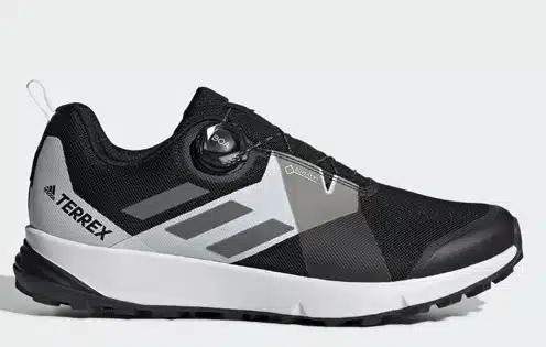 Wenn man lange auf den Trails unterwegs ist, darf es komfortabel sein. Damit gemeint sind sowohl Passform als auch ‚Schnürung‘. Beim Terrex Two ist das Boa System eingearbeitet, das für eine genaue Regulierung der Weite und einen dauerhaft guten Sitz sorgt. Passt unterwegs doch nicht so? Einfach kurz nachdrehen und weiterlaufen. Der Terrex Two sitzt gut am Fuß, der Vorfußbereich ist großzügig geschnitten, sodass sich der Fuß ausdehnen kann. Die Continental Sohle hält zuverlässig. Der Terrex Two ist kein Leichtgewicht, er spielt seine Stärken speziell bei langen Läufen im Gelände aus.