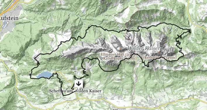Die Strecke führt dabei um die Kaiserkrone, d.h. um den ganzen Wilden Kaiser. Der Startschuss fällt in Scheffau. Hoch über dem türkisblauen Hintersteiner See geht es auf die Walleralm, über den Bettlersteig hinauf zm Stripsenjoch, durch das Kaiserbachtal, unter Mauk- und Ackerlspitze, vorbei an der Wilderer Kanzel und dem Bergsteigergrab, unterhalb der Tärltürme und durch das Kübelkar, weiter über den Jubiläumssteig und entlang von Tuxeck und Treffauer zur Kaiser-Hochalm.