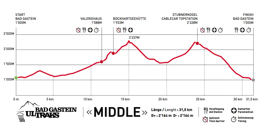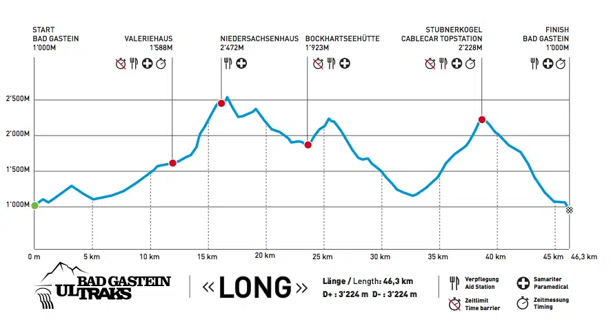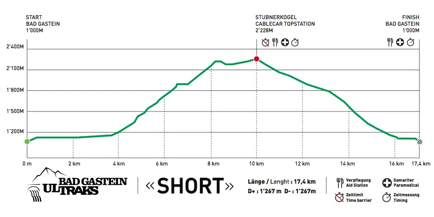 Alle drei Ultraks Strecken – Shorta – , – Middlea – und – Longa – , beginnen an der Talstation der Stubnerkogelbahn im Zentrum von Bad Gastein und führen über drei unterschiedliche Tracks in die inspirierende Alpenkulisse des Salzburger Landes. Die Bad Gasteiner Ultraks laufen zum einen über den Kreuzkogel oberhalb Sportgasteins bis hin zum Stubnerkogel, sowie entlang der Bockhartseen und letztendlich entlang des Gasteiner Wasserfalls, dem Wahrzeichen von Bad Gastein.